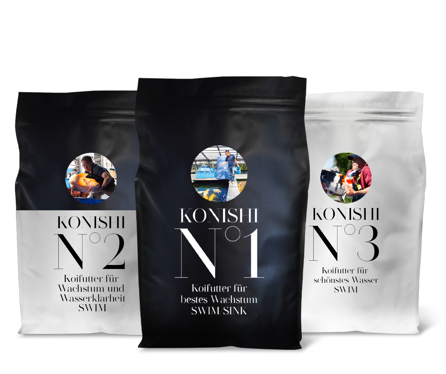 Die Konishi-Futtersorten vereinen japanische Tradition mit moderner Mikronährstoff-Forschung durch Hofmanns Micronutrition. Die Effekte zeigen sich in klarerem Wasser, stabilerer Verdauung und sichtbar stärkerem Wachstum. Koi wirken vitaler, entwickeln mehr Substanz und präsentieren ihre Farben intensiver. Konishi N°1, N°2 und N°3 sind die Premiumlinie für ambitionierte Halter, die das